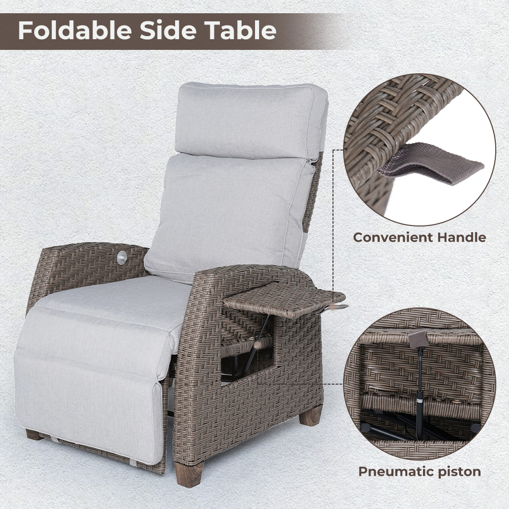 Flip-up side table provides convenient storage for drinks, snacks, or remote controls, and tucks away when not in use to save space; included air pump allows quick inflation for targeted cushion support, enhancing your lounging experience.