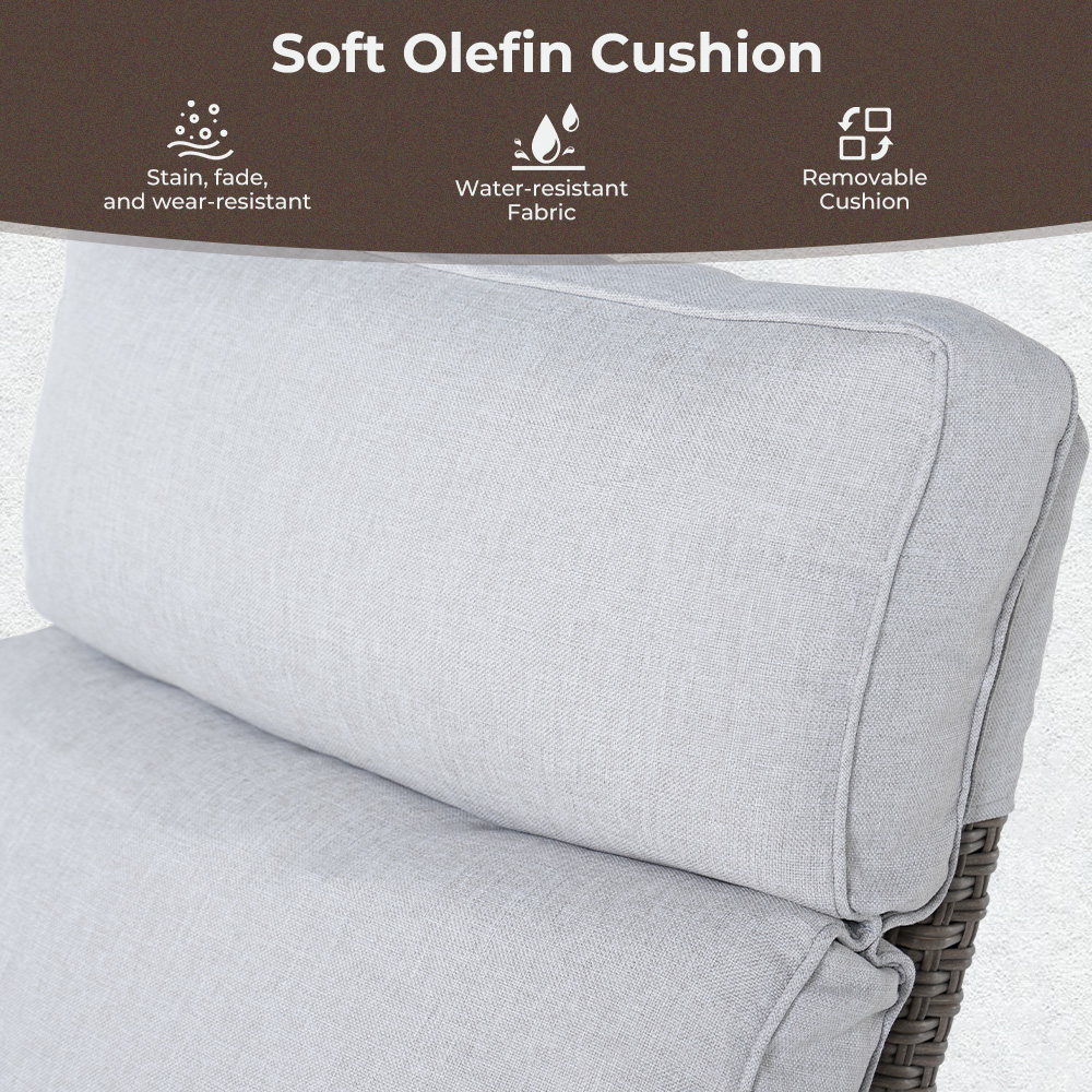 Durable wicker frame and removable olefin cushion stand up to sun, rain, and daily wear; the cushion is easy to clean and maintain, making the chair ideal for both indoor cozy corners and outdoor patio setups.