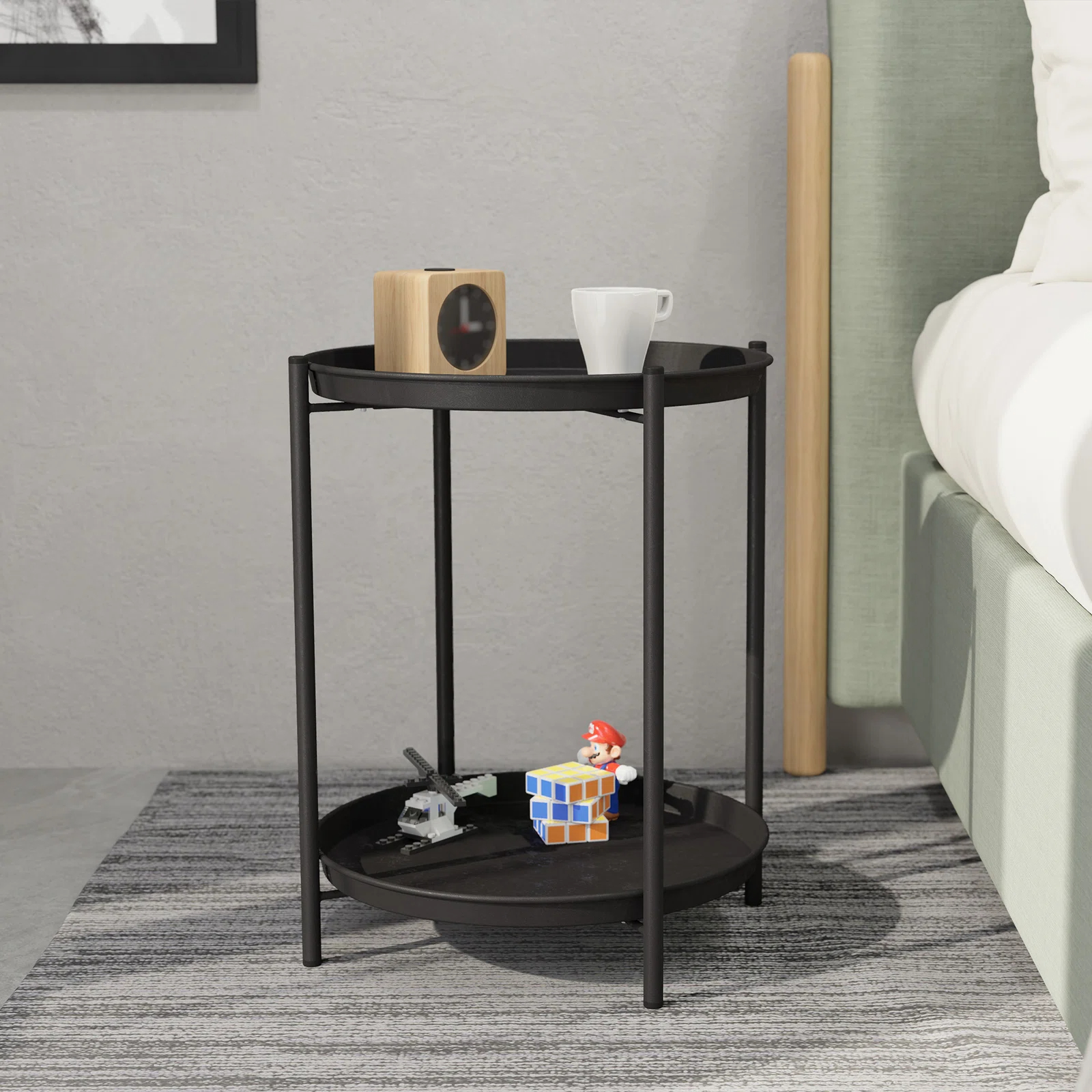Two-tier design provides double the storage and display space—use the top for drinks, snacks or decor, and the lower shelf for books, magazines or pool accessories, eliminating clutter in small areas.