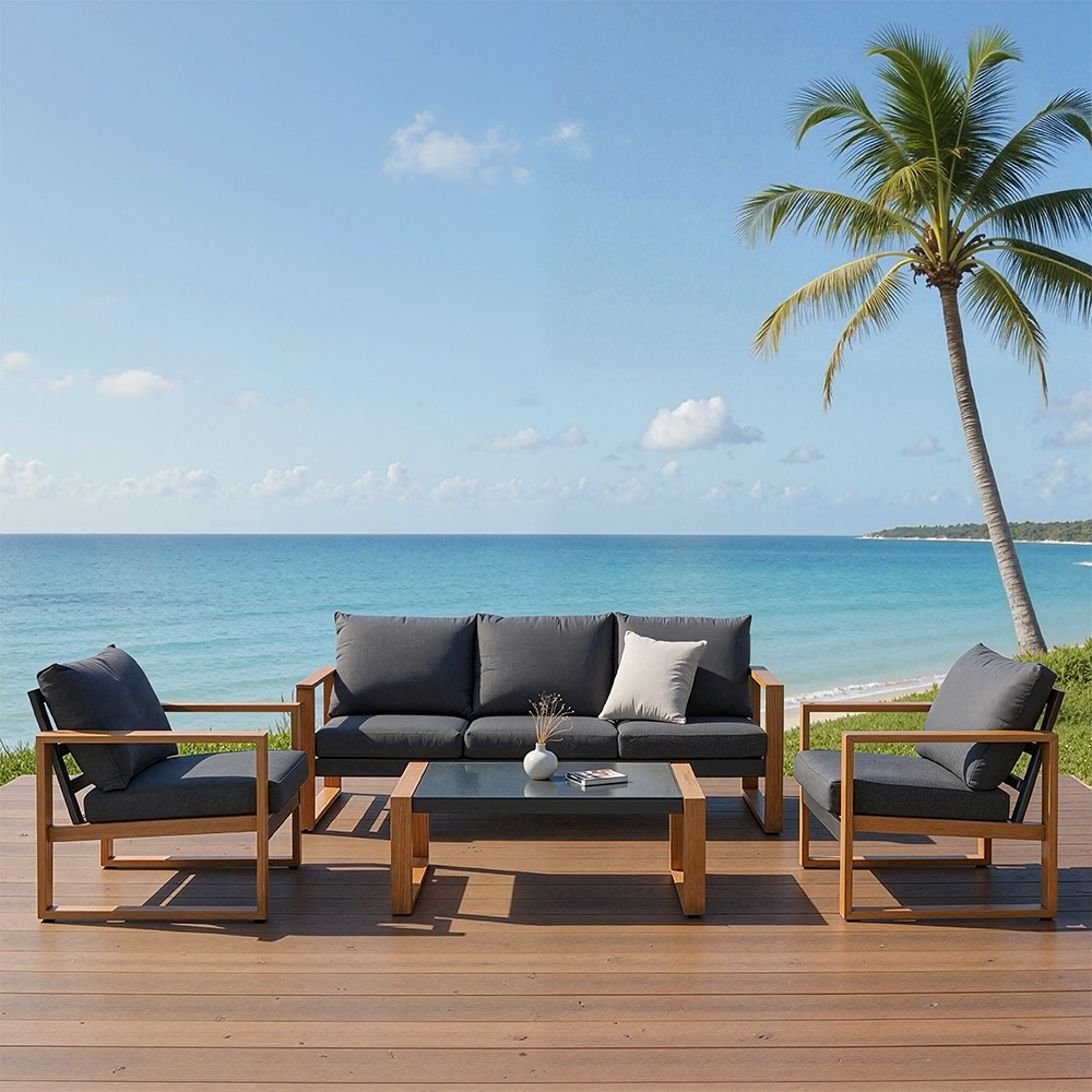 Complete Set: Includes 2 sofas, a 3-person sofa, and a table, seating up to 5 people.
